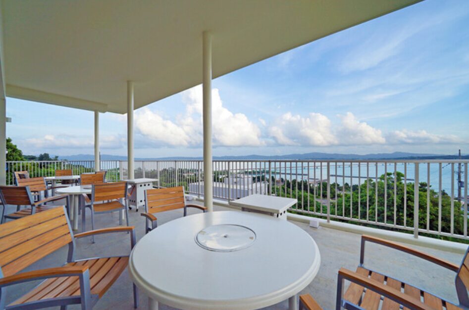 古宇利島の高台に建つ「カフェ フクルビ」は、息をのむような絶景が広がるテラス席が大人気のカフェです。