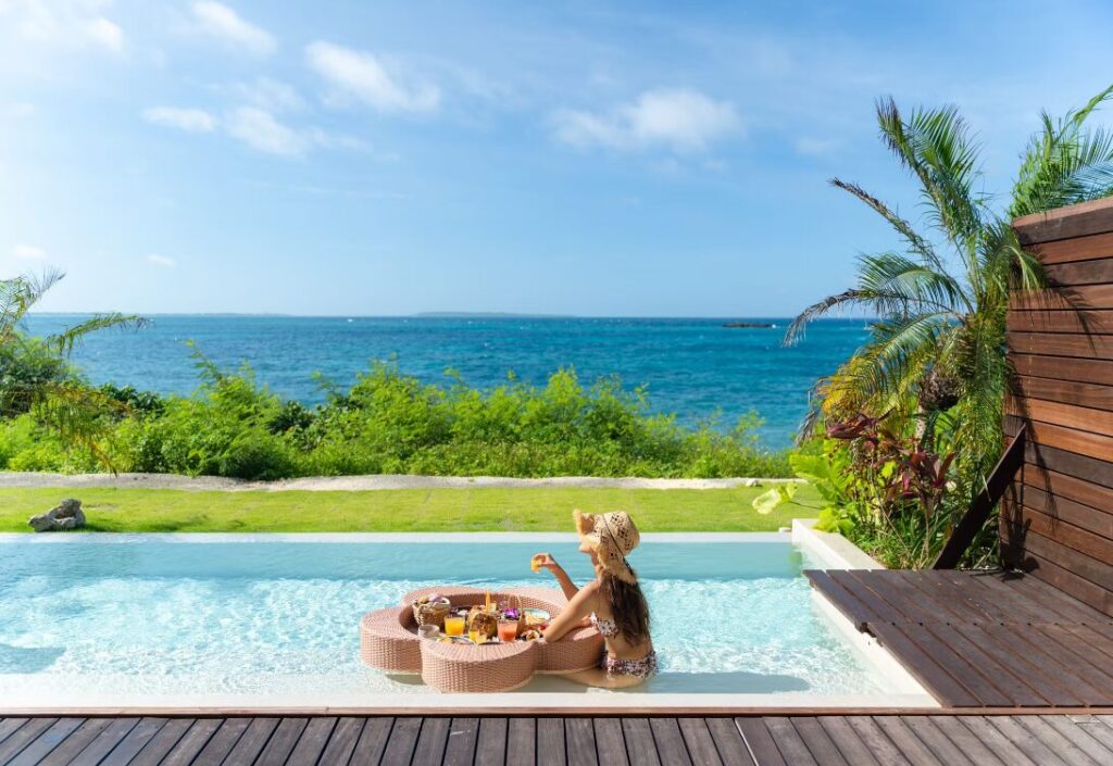 宮古ブルーの絶景を望む全室プライベートプール付きヴィラ、旬の食材を使ったコース料理、そして島ならではの観光体験。