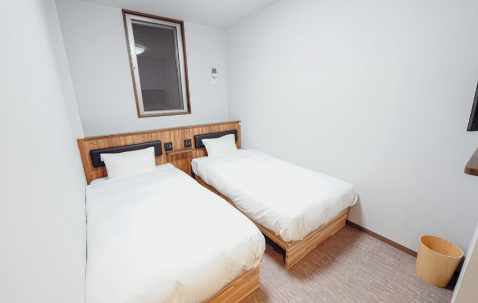 ベッドが分かれているため、友人やカップルでの利用におすすめ。コンパクトながら開放感を感じられる造りです。