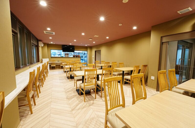 朝は和洋から選べる朝食、昼は定食、夜は居酒屋メニューと三食対応