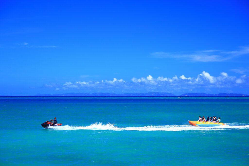 スピード派におすすめなのが水上バイクやジェットスキー。古宇利島の広々とした海を駆け抜ければ、まるで空を飛んでいるかのような解放感が味わえます。