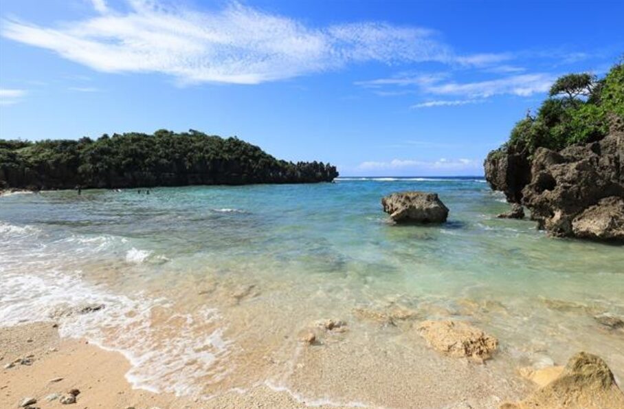 沖縄の創世神話「アダムとイブ(ウミンチュとアマミチュー)」に登場する洞穴が残る神秘のビーチ。観光地化されておらず、地元の人々が泳ぎや釣りを楽しむ素朴な場所です。 - 注意点:海が深いため遊泳には不向き。洞穴の見学や散策がメインになります。