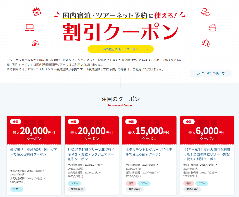 JTBでは期間限定クーポンキャンペーンを展開中です。